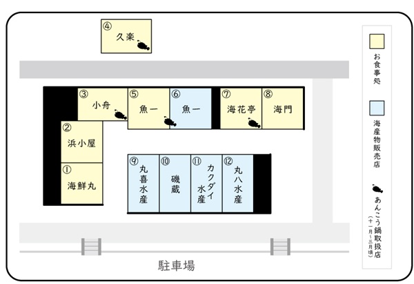 海鮮丼やお寿司を出す店が何軒もあり、新鮮な魚料理が楽しめる。