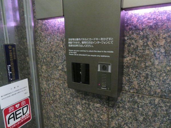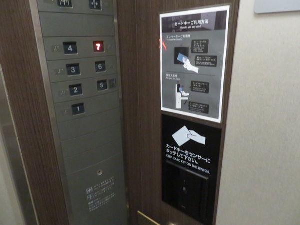 エレベーターはカードキーをかざさないと動かない仕組みです。