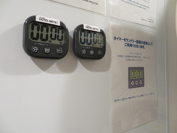 洗濯終了の目安をわかりやすくするため、キッチンタイマーが置いてあり、部屋で洗濯終了までの時間を測れるようになっています。