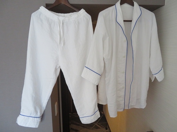 パジャマは上下でわかれているものが部屋に準備されています。