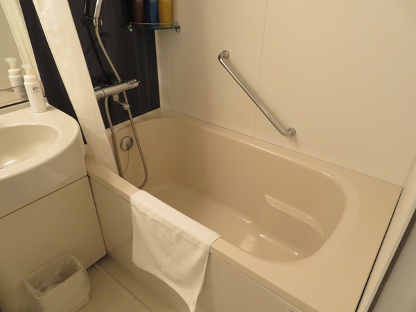 部屋は一般的なビジネスホテルだが、バスルームのパスタブが広め。