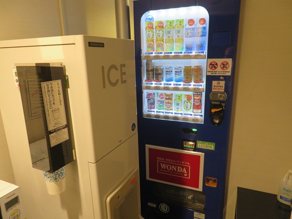 自販機や電子レンジ、製氷機は3階のエレベーターの隣に設置されています。